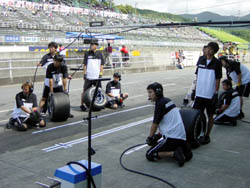 | 国内最高峰レースながら、今ひとつ盛り上がりの欠ける フォーミュラニッポン。 なんとか盛り上げようと色々工夫していることの 一つがタイヤ交換です。 レギュレーションで、レース中に必ずピットインしてタイヤ交換を しないということが規定されています。 | |