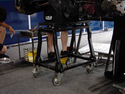 | フリー走行終了すると、決勝までの間に 再びレースカーが整備されます。 フォーミュラカーって、タイヤ外された途端に 情けない姿になっちゃいますね。 | |