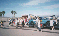 こいつらは、質問事項を首から下げてあちこちに聞いてまわる。 子供たちに囲まれているのは、DAの「かっこインテグラ」。 なぜかリアヘビーになり過ぎて、ぜんぜん曲がらなそうなインテグラになってました。 実際ほとんど走ってませんでしたね。 |