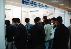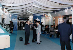 電動車輌協会主導の展示会日本ルーム。 展示会場は3個所に分かれていて、中国でひとつ、欧米でひとつ、日本でひとつ といったところです。もちろん、完全に分かれているわけではないのだけれども、 大きなブースはそのような分類。ルシオールのような小さなブースのところは 色々混ざっているけれど、それも大体同じ分類で配置されていました。 |