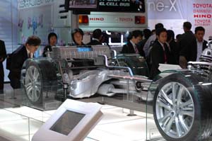 EVS22は横浜へ来た。FISITAと同時開催。 今の仕事ではEVSに出すようなネタが無く、シンポジウムを聞くだけに 高価な一般参加費(85k円)を出せる予算も無いので、 展示会(一般500円)を見に行った。 シンポジウムは26〜27日に集中していて、まだ実質的に始まっていない。 このためか、展示会は人が多くなく、空いていた。 というよりも、展示会場のパシフィコ横浜が広すぎるため、空きスペースも多く、 それが原因で逆に寂しい感じを受けてしまうのだ。