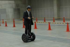 | 「おっ」と、思ったらセグウェイ試乗開始していました。 なぜか、日本SGIが 代理店契約をして、工場内の移動手段用途などに売り出すというニュースは 聞いていました。 この人も初めて乗るのでしょうが、簡単に説明を受けて走り出したら.... | |