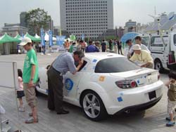 エコカーワールド(旧名称:低公害車フェア)は代々木公園で行われていたものだが、 最近になって横浜の 赤レンガ倉庫で開催されるようになった。 横浜でやるようになってから行く機会がなかったが、日曜日に時間があったので 車で出かけることにした。 しかし、みなとみらい地区はひどい渋滞。 電車の方が良かったと後悔。