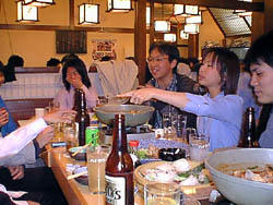 新しい年度になって、まずは今まで製作した電気自動車の試乗会。 「何をやってきたか」は、今年何をやるかに直接関係ないが、 知っておくことと体験することは必要なこと。 それを終えたら、今期一緒に研究をする仲間と親睦。 これも恒例です。