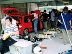 今回はハコ車3台なのでキャリアカーに載せられてきたEVたちが元気に予選を走っている。 去年の「メット忘れた!事件」ほどではないが、今年も余計なところで 車検からつまづくのはお約束。 |