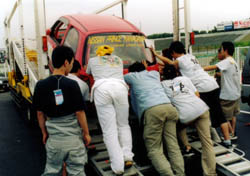 一台減ってしまったが、積車に積み込みレース終了。 |