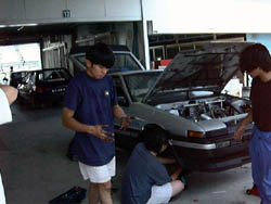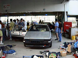 足回りがレビンから移植されて、午後5時からのフリー走行に 備えます。 |