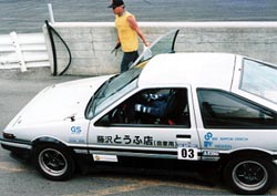 パドックの風景。 「超」小さいパドックですが、これでもちゃんとJAF公認サーキットのパドックです。 MITのソーラーカーなどはさすがに、サーキットまであがるのは止めたようです。 EVのプレリュードなども坂でフロントに荷重がかからず、登るのに苦労していたようです。 |