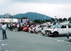 Mr. Kagawa from Mitsubishi material He joined this rally with their new converted EV. He had been promoting Solar car and entried WSC World Solarcar Challenge. |