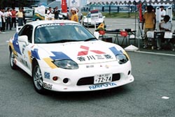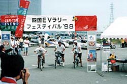The rally winner team No-Tenki's FTO. This EV has Litium-ion battery. Everybody can understand the reason of this victory. But Mr. Suzuki the driver said Litium battery is not good at this time. He want more amp. |