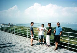We came back via "Akashi Kaikyo" bridge that completed construction this year. Can you see the bridge over us? And over this bridge there is the main land of Japan. |
