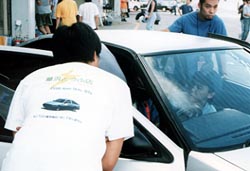 EV86の方の作業といえば、「藤沢とうふ店(自家用)」ステッカーを 貼ることです。 |