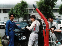 今年のコンバートカー、名前は99eと先についてました が、マイティーボーイ(マーボー)などの強力な候補を 押しのけて、ベースカーに決定したのは濱田君の乗っていた プレリュード。 ちょうど、エンジンの調子が悪く乗り換えで廃車にするところ だったので、これをベースとすることにしました。 リサイクルにもなるのです。 |