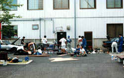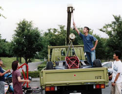 作業風景 今年は車が3台になり、同時に研究室の人間の数も増えているので、 担当の車輌を決めての分業制。 外の作業なので、雨が降ると困るのですが、困った作業後半の 最後の最後を除いて、天候には恵まれました。 |