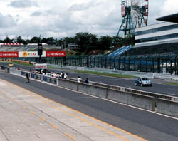 2周め、2コーナーで砂煙! EV86がケツをふったところ、後続白のCR-Xも避けられず、 一緒にグラベルへ。 EV86のドライバーは、昨年のリベンジで大西君が 乗りましたが、今年も砂に埋まる運命となりました。 とうふ店86号、どうも鈴鹿では完走できない運命 のようです。 |