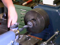 次に旋盤です。 ここでは、モーターとアダプタの間のカラーを作っていきます。 |