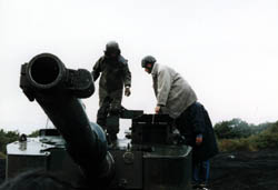 It started littile rain, when we started to ride. We need to watch our steps when climbing up the turret. 2 people ride the tank, standing captain's hatch and gunner's hatch. |