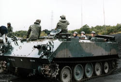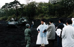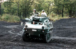 The latest tank of Japan, it was taken into service 1990. It isn't new but latest. Though it was adopted in 1990, its performance is kept the highest level I heard. It has 120mm tank gun with band magazine type auto reload system just like French tank. And it has an armor using titanium and ceramics against HEAT shells. The price is also highest level. One vehicle costs 900,000,000 yen, 9 million US dollar. Now 90 tank can be seen in Hokkaido the northen island and around Mt.Fuji where we went. |
