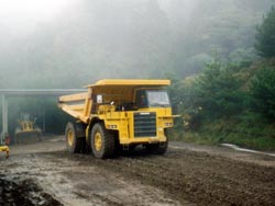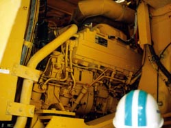 30,500ccの直噴ディーゼルターボで1065馬力。 エンジンオイルの量だけで130リッターもある。 気になる燃費だが、建機の場合負荷によって異なるので、 ダンプの場合にしても燃料あたりの距離ではなく、 時間あたり燃料であったり、燃料補給までの連続作業の インターバル時間で表されるという。 時間あたりでどれだけ稼ぐかを突き詰めているので、いかに止まらないで働くのか ということが偉いのだ。 |