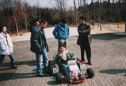 相変わらずグルグル回っています。 リアヘビーですから、これさえ大丈夫ならポルシェだって乗れる? 初期に頭入らないアンダーステアから、超オーバーステアに変化する 乗用車としては乗りにくい設定も、このカートでは意図的といえば かなり意図的な設定。 だって、その方が楽しいじゃん。別に速く走る必要もないし。 でも、近頃構内を走っていると、「変なもんが走っている」と事務の方に 通報が行くので困ってます。 |