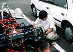 構想、製作から一年近くたっても、まだまともには走れていない98e インバーターの調整も行い、連休中にトルク司令関係の回路も問題を解決して 「約束の連休明け」ということで走らせます。 が、その前に道具の整理が最初の仕事。 |