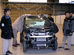 もらったスマートはバラバラだったので、学生は完全な形 をしているものを見るのは初めて。 参考に写真に収める。 でも、この車で高速を走るのは辛そうです。 なんといっても、600ccですからね。 |