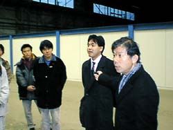 本当にバラバラの状態で、もともとのサイズが小さい分、部品を積載ローダーに 載せる訳にいかず、教授の自家用車がエスティマだったので、 細かい部品を載せるために借りて、トラックとエスティマの2台学生6人体制での 「旅」になりました。 |
