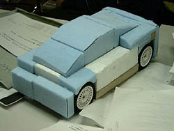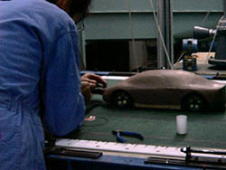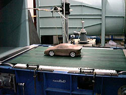 そのモデルを使って風洞実験を行った。 クレイモデルは1/10スケールで、心材にスタイロフォームや発泡スチロール を使い、表面にインダストリアルクレイを貼って成形。 |