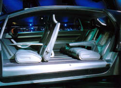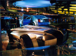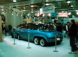 オートノミーから、Hywireのリアをのぞむ。 Hywireには20インチと大径のホイールを履いているので、 プロポーションとしては、結構恰好良くみえる。 やっぱり、タイヤはでかい方が恰好いいように見える。 ただ、ショウモデルというのは車両全体でみてもデカイ。 小さい車じゃ、貧乏くさくしか見えないので、ショウモデルは一般的に 大きく作るそうだが、その例に漏れずデカイ。 |