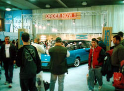 ちょっと恰好悪いかな。 何にしろ存在感はありました。 ブースは、正面が大学のカーデザインの展示。 正面隣は軍用車両の展示。隣がウォッシャータンクの水を温める装置の会社、 またその隣がミシガン大学のソーラーカーチームという配置でした。 ウォッシャータンクの会社でない側はVWのブースでしたが、柱があって 仕切られていました。 |