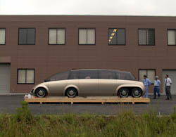 | ビニールを剥いでお披露目。 ナルドで使ったエアロパーツは外され、窓に打ち込まれたビスも パテを盛って隠し、もう一度ショウモデル並みの化粧を施されて きました。 | |