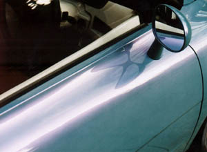 緑をベースに光の加減で紫色の反射をする、異なった2色が使われおり、 2号車全体のイメージを特徴づけています。 |