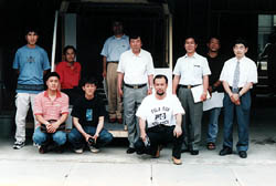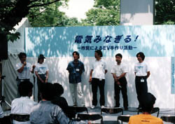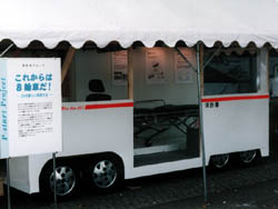 低公害車フェア前日(6/4)に、ストレッチャーの使い方など 救急救命の実際と、今回のモデルへのご意見を伺うために 地元足利と太田市の救急隊員の方々に来ていただいて 指導を受けました。 |