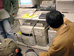 管理をしているコンピュータ。 これで能力的には数千台の管理が出来るといいますから、管理センター自体は 利用とは関係なく場所を選ばないということですね。 北海道のシステムを管理してもよいし、逆に極端な話、管理センターは海外にあってもよろしい。 |