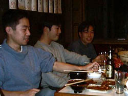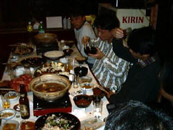 今回はちょっと豪華に、すき焼鍋形式の忘年会です。 肉は一人あたり400gもあるので、食い切れない。 しかも、なかなかみんな集まらないのです。 |