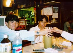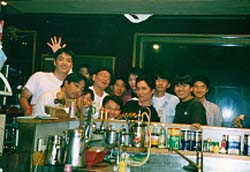 まだ4人しか集まっていないので、とりあえず4人で乾杯。 おぃおぃ、10名分の予約でこのまま来なかったら幾らに なるんだよ...という心配をしておりました。 |