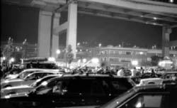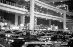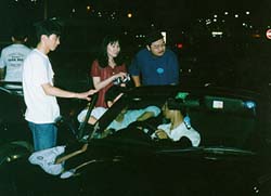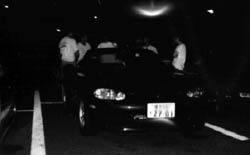 週末の大黒PAのにぎわいは大変なものです。 油圧で飛びはねている車あり、大音響のウーハーを積んだ車あり、最近は テレビもついていて、移動スクリーン車のようなものですね。 |