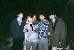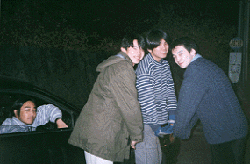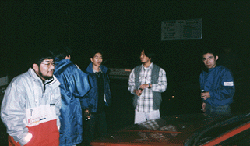 使用前 飯を食い、お出掛け前の面々。 もう、この日は眠かったなぁ。 なにせ前日、学校に泊まってましたから。 といっても、徹夜あけのさみしいバレンタインデーなので、こういう時は 行くっきゃないでしょ....と思ったが、事故が恐いので助手席へ。 結局最後まで寝てたように思います。 |