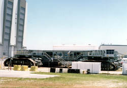 VABには70個のLifting deviceというのですから、 クレーンの類が設置されていることになります。 その中でも、この250トンクレーンは、もちろん一番の力持ち。 シャトルのオービターは空の状態で76〜79トンですから、もちろん シャトルに対しては随分オーバースペックではあります。 |