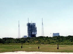 5月8日(2000年)の朝にタイタンIVの打ち上げが 予定されているので、41とは見た目が違いますね。 4月に予定されていたGPS打ち上げ用のデルタロケットもトラブルで 5月に日程がスライドしてしまったので、 5月はタイタン(8日)、デルタ(11日)、アトラス(15日)と 打ち上げ日程が目白押しです。 |